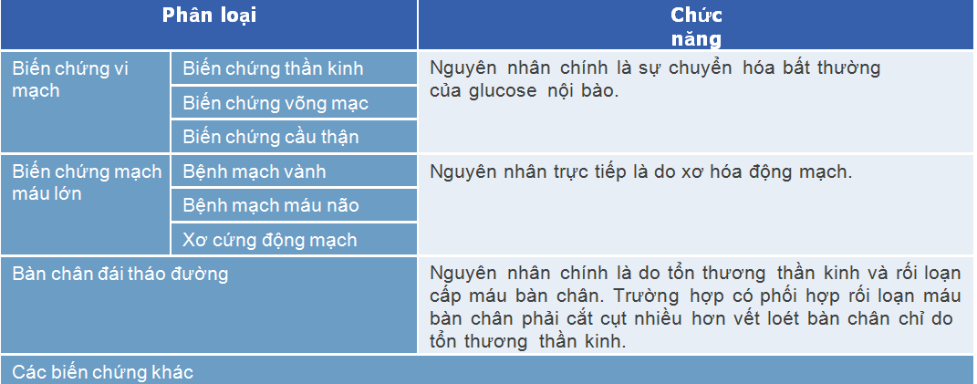 Phân loại biến chứng tiểu đường